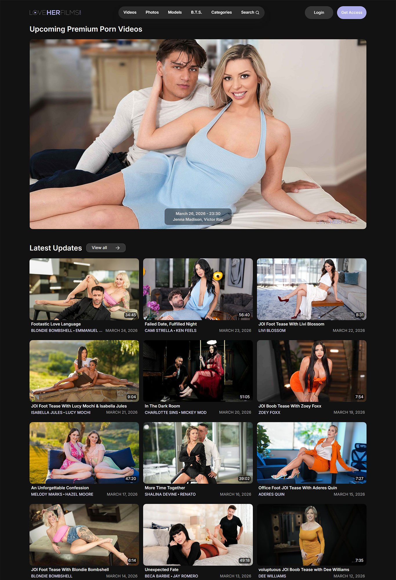 Love Her Films is a substantially excellent site for catering to the fantasies of banging naughty babes. Whether someone wants to enjoy cock worship videos or interracial action with feet, everything will please your mind for sure. They have a mix of popular pornstars and horny newcomers who won’t stop for anything less than large cocks.